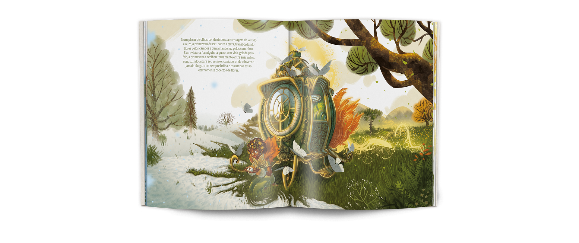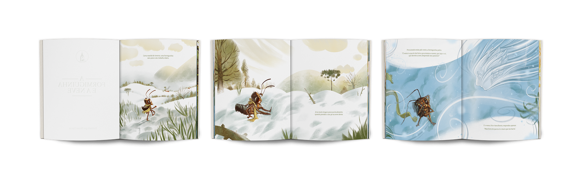 Illustration work for the book “A Formiguinha e a Neve”, published by the Brazilian publisher Edições Oratório. This traditional Portuguese fable tells the story of a diligent little ant who faces a major obstacle on a winter's day. Through unexpected encounters and requests for help, she finds a surprising and special solution that transforms her situation. It's a moving tale about perseverance and the power of faith.